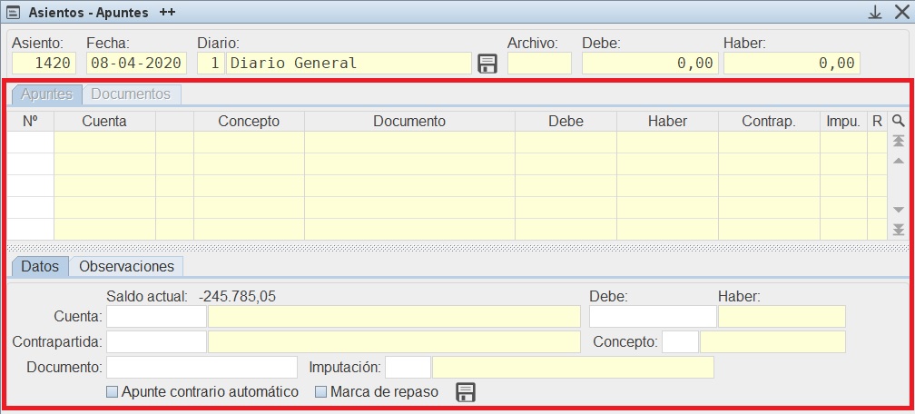 Contable / Asientos / Mantenimiento, esto