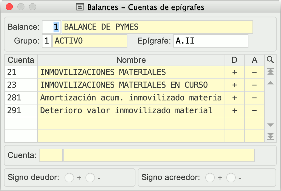 'Signo Deudor' y 'Signo Acreedor' equivalen a los valores